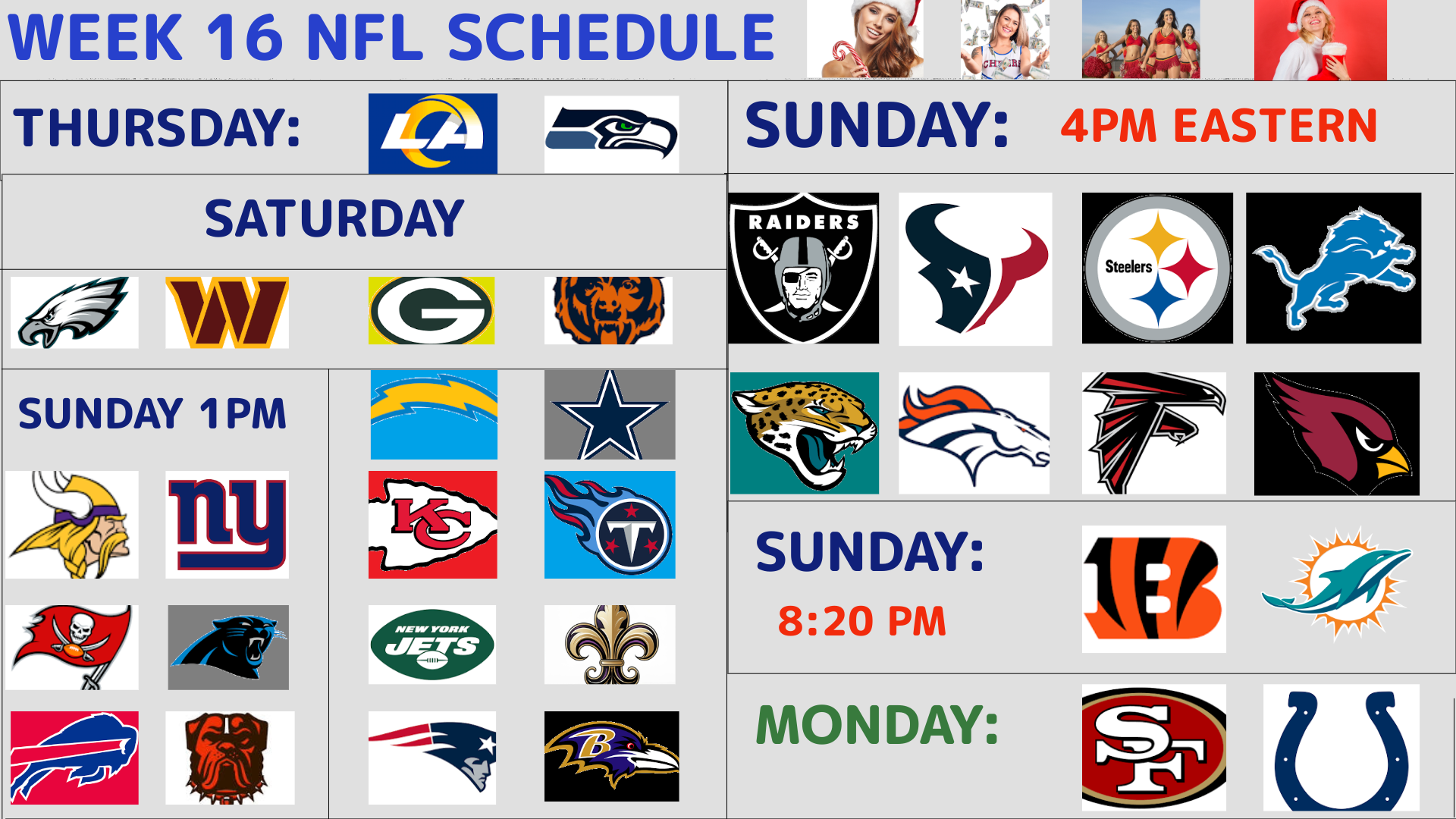 NFL SCHEDULE 2025 - WEEK 16